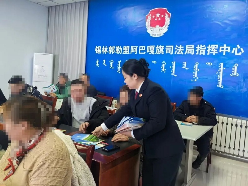 为切实筑牢社区矫正对象思想防线,强化日常监管质效,12月19日,阿巴嘎旗人民检察院联合旗司法局共同开展社区矫正对象集中学习及警示教育活动。院党组成员、检委会专职委员霍塔娜参加活动,并为社区矫正对象进行法治宣讲。