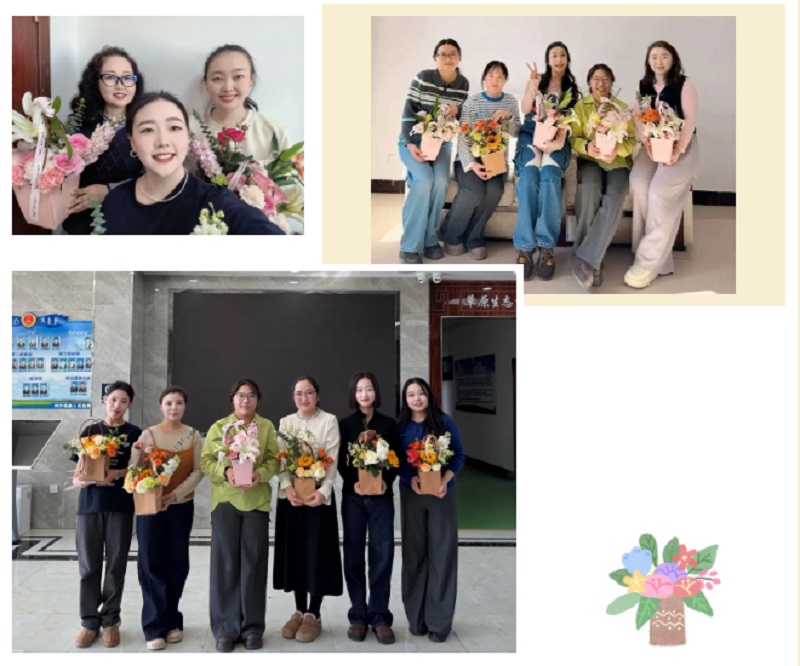 活动现场花香四溢、氛围温馨。在花艺老师的细致讲解与耐心指导下,大家兴致盎然地修剪枝叶、搭配色彩、设计造型。姐妹们相互交流、彼此协助,在一剪一插、一修一整中暂时褪去工作中的严谨锋芒,尽显温润从容、优雅知性的别样风华。