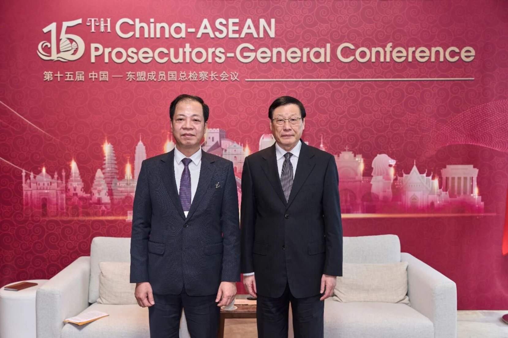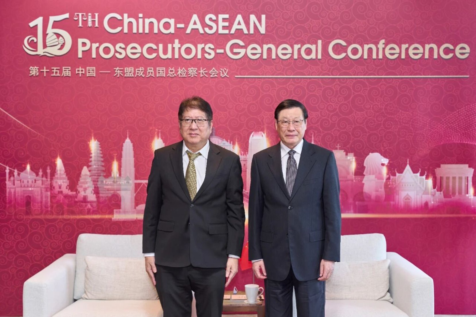 9月22日,中华人民共和国首席大检察官、最高人民检察院检察长应勇在香港特别行政区分别会见出席第十五届中国—东盟成员国总检察长会议的文莱总检察长诺·哈希玛、柬埔寨总检察长谢梁、马来西亚总检察长莫哈末杜苏基、缅甸总检察长迪达乌、菲律宾总检察长法杜隆、新加坡总检察长黄鲁胜、泰国总检察长派叻及印度尼西亚副总检察长纳伦德拉·贾特纳、老挝最高检副检察长彭坦·邦塔亚、越南最高检副检察长陈海军。