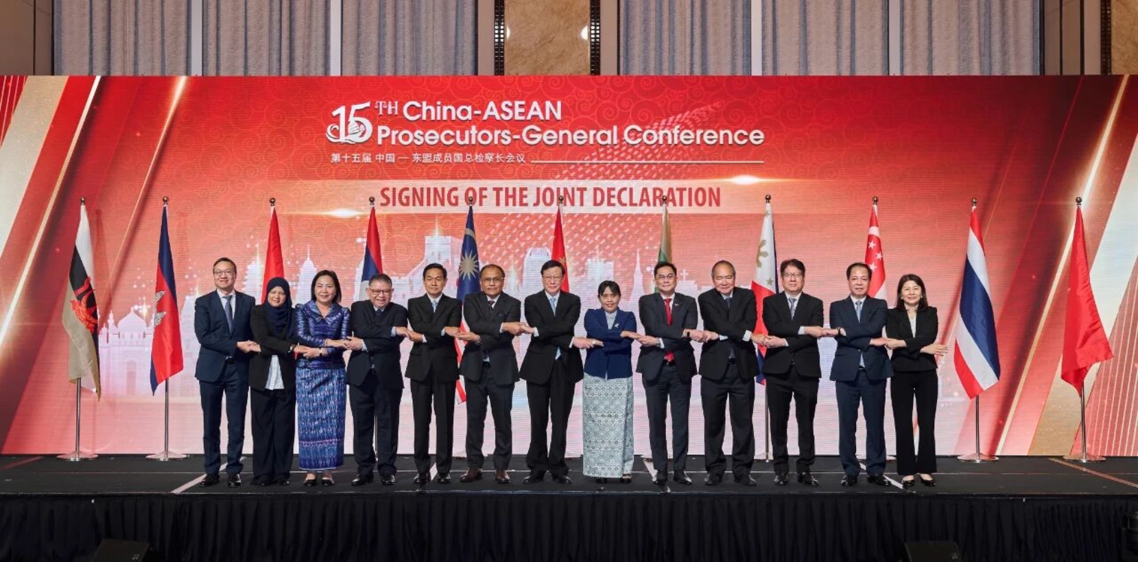 出席会议的各成员国代表团团长共同开通中国—东盟成员国总检察长会议新版官方网站,在充分沟通交流的基础上,共同签署《第十五届中国—东盟成员国总检察长会议联合声明》,就合力打击跨国犯罪、加大洗钱和腐败相关犯罪刑事司法协助力度、加强成员国检察机关间沟通协调和交流培训、共同建设运行好中国—东盟成员国总检察长会议官方网站等,达成重要共识。