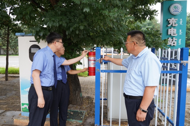 近日,内蒙古自治区达拉特旗检察院检察官邀请人民监督员对辖区内公共充电桩设施整改情况进行“回头看”,确认该旗312个公共充电桩已经全部完成消防设施标准化配置。今年3月,该院开展公共充电桩消防安全检察公益诉讼专项监督,针对部分公共充电桩站点未按相关标准配备干粉灭火器,存在严重消防安全隐患的问题,对住建部门发出检察建议,督促其尽快整改,住建部门及时采取了相应措施。本报通讯员岳妃斐摄
