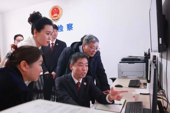 近日,北京市检察院第一分院邀请全国人大代表、北京市人大代表调研刑事执行检察工作。在派驻延庆监狱检察室,检察干警向代表演示了如何借助信息化手段挖掘整合刑事执行数据、运用大数据法律监督模型筛查线索。本报通讯员巫志杰 李宜摄