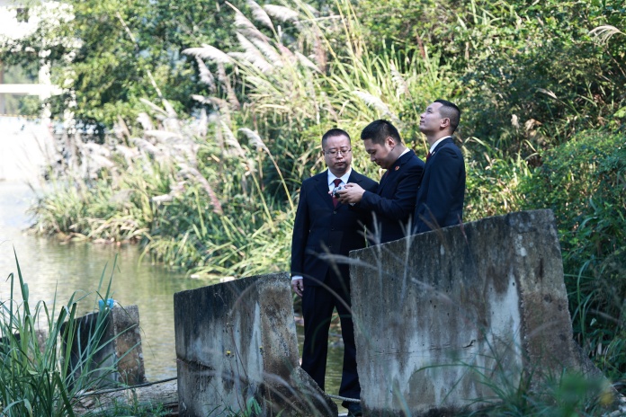 大滩口水库为河道型水库,库岸线长约40公里,库区地跨湖北省利川市、重庆市万州区和石柱土家族自治县三地,是万州区水源地之一。近日,利川市检察院与万州区检察院联合对大滩口水库河道堵塞、库区违建问题整改情况开展“回头看”。经巡查,确认目前受损岸线已得到有效修复,违建厂房已拆除,库区蓄水正常。图为检察官操纵无人机查看库区情况。本报记者戴小巍 通讯员牟丹摄